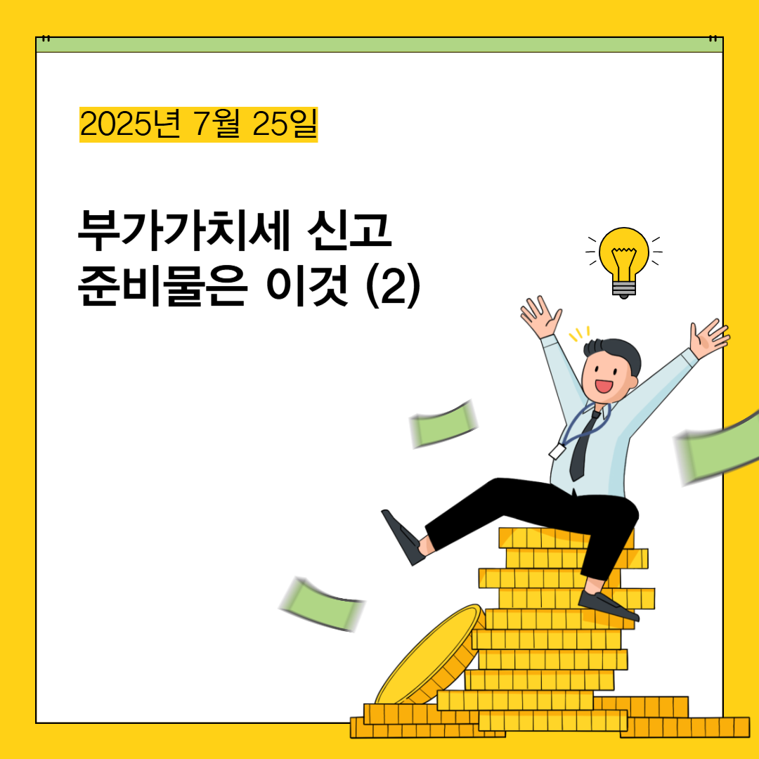 7월 25일, 부가가치세 신고는 사업자라면 피할 수 없는 의무입니다. 미리미리 필요한 서류들을 꼼꼼하게 준비하여 정확하고 효율적인 신고를 마치고, 불필요한 가산세 없이 성공적으로 사업을 운영하시길 바랍니다!